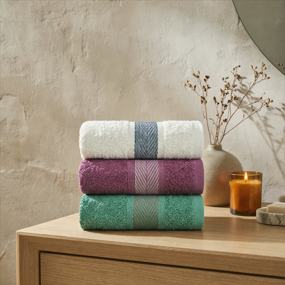 La toalla de manos Julia de Cannon es perfecta para el uso diario: suave, liviana y práctica. Con 380 g/m², ofrece buena absorción y un secado rápido, ideal para el baño, el lavamanos o la cocina. Su diseño destaca por una cenefa central tipo espiga que le da un toque moderno y elegante, fácil de combinar con cualquier ambiente.